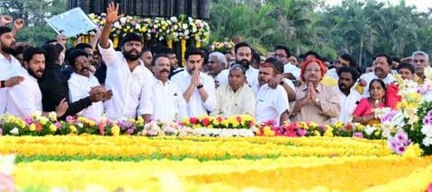 హైదరాబాద్ (చైతన్యరథం) ఎన్టీఆర్ వర్ధంతి సందర్భంగా ఆదివారం హైదరాబాద్ లోని ఎన్టీఆర్ ఘాట్లో ఏపీ విద్య, ఐటీశాఖల మంత్రి నారా లోకేష్. ఘనంగా నివాళలర్పించారు. ఆయన సమాధిపై పూలమాలలు ఉంచి అంజలి ఘటించారు. మంత్రి లోకేష్తో పాటు పెద్ద ఎత్తున టీడీపీ నేతలు, అభిమానులు తరలివచ్చారు. ఎన్టీఆర్ ట్రస్ట్ ఆధ్వర్యంలో ఘాటు పూలతో అందంగా తీర్చిదిద్దారు. ఈ సందర్భంగా ఎన్టీఆర్ సినీ, రాజకీయ. జీవిత విశేషాలతో చిత్ర ప్రదర్శనను ఏర్పాటు చేశారు.