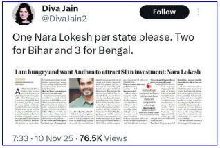 • మా రాష్ట్రానికీ లోకేష్‌లాంటి మంత్రి కావాలంటూ సోషల్‌ మీడియాలో నెటిజన్ల పోస్ట్‌లు